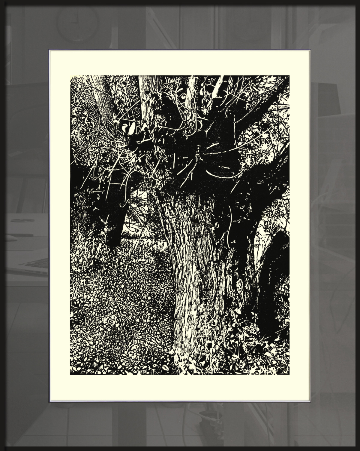 Detail einer alten Trauerweide an der Hessel im Ortszentrum von Sassenberg. Der Druck in Schwarz von der für den Grauton vorgesehene Druckplatte sprach für sich und machte die zweite Druckplatte überflüssig.