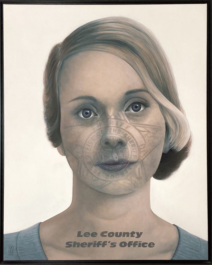Arbeit im Nachgang der Ausstellung. Welch schöner Spruch – eingraviert auf den symbolhaften Sheriffstern in Florida/USA, der in die erkennungsdienstlichverwendeten Fotos einkopiert ist.