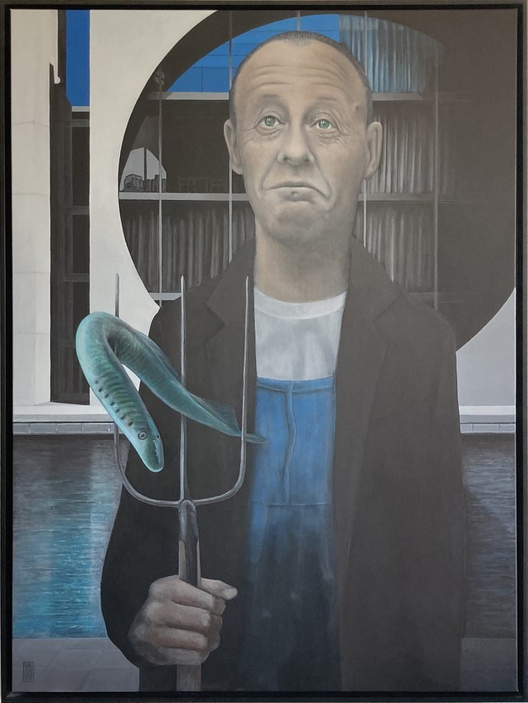 Neunauge sei wachsam – vom Mittelschichtler, Millionär, Blackrocker und Vampirfisch. Das letzte Bild für die Ausstellung „menschmalerei+“. Passend zur Zeit: Ein MERZ-Bild! Und die Welt ist gerade wirklich DADA!