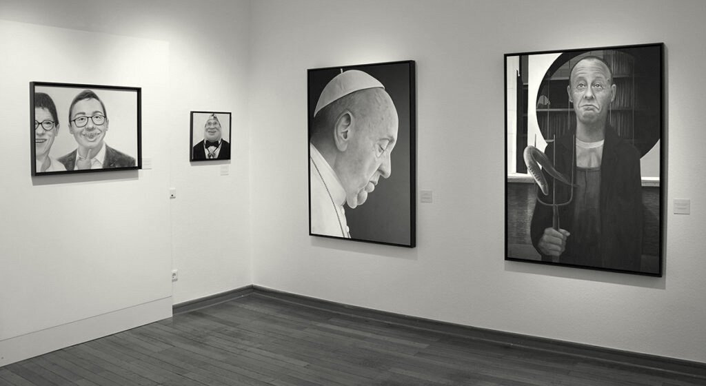 „menschmalerei+” wurde von der Stadt Warendorf ausgerichtet und war für Kunstinteressierte vom 17. Mai bis zum 19. Juli 2020 geöffnet. Gezeigt wurden aktuelle malerische Arbeiten – ergänzt von Druckgrafiken und 3D-Visualisierungen früherer Jahre. Das sympathische Knarren und Knarzen des Fußbodens, das die Geschichte des Historischen Rathauses seit 1404 spüren lässt, kann nur beim Gang durch eine Ausstellung erlebt werden. Genauso wie die Fensterblicke auf die Laurentiuskirche, die imposant neben dem Rathaus in den Himmel ragt.